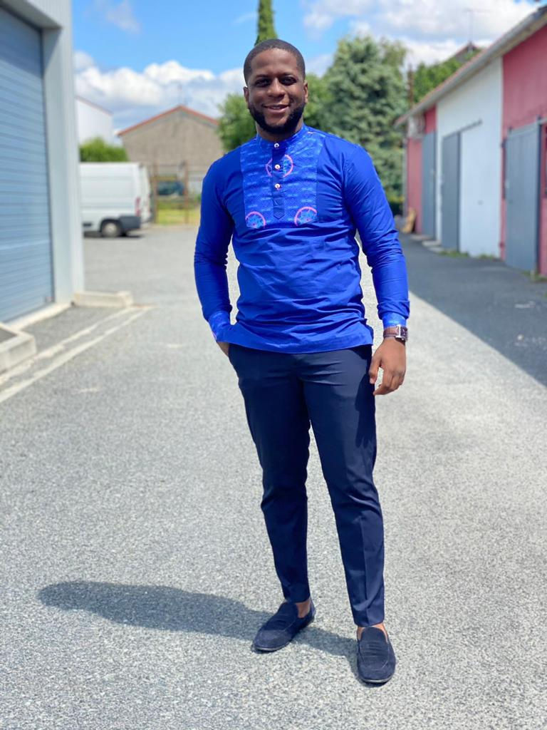 Tunique bleu à motifs rose
